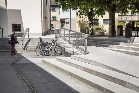In the historic center of Bludenz, at the connection between two roads the urban space of the “Gemüsemarkt” was redesigned and became accessible for handicaped. A newly builded shopping mall closes again the southern front of the place. The new square creates a framing for the entrance and leads directly to the new shopping mall of the “Kronenhaus.. A landscape of staircases with an integrated ramp creates a barrier-free overcoming of different levels and divides it in to areas. The upper level with new seating and a new lighting concept remains free of traffic and preserves the shading trees. Attractive seat steps form the view and the transition to the lower area, leading to the mall and to an access for the delivery traffic.